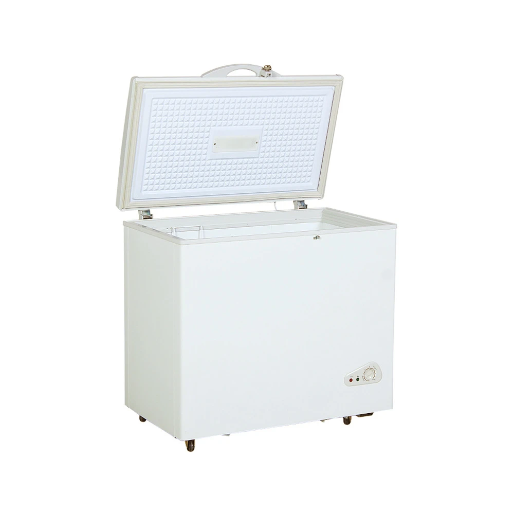 MARCA MIGSA, FABRICADO EL EXTERIOR EN LÁMINA COLOR BLANCO, TINA INTERIOR EN COLOR BLANCO, UNA PUERTA SUPERIOR TIPO DE COFRE, CON 1 CANASTILLA. CON CAPACIDAD DE 108 LITROS (3.7´3). TEMPERATURA DE TRABAJO A -18°C. CON UNA CANASTILLA, CHAPA Y DRENAJE. CONTROL DE TEMPERATURA ANÁLOGO CON FOCOS PILOTOS. CORRIENTE A 110V/60HZ. PESO NETO DE 28 KG. GAS R134A.