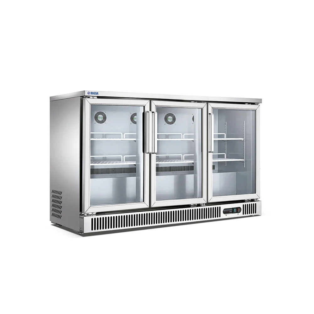 Refrigerador Contra Barra de 3 Puertas de Cristal de 380 Lts.